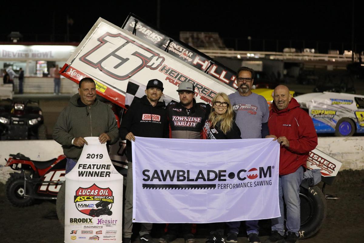 Bryan Hulbert - MESQUITE, Texas (October 21, 2019) A emotional weekend for Sam Hafertepe, Jr. who said goodbye to his Grandfather while competing at the 46th Devil's Bowl Winter Nationals, the driver of the Hills Racing Team No. 15h brought pride to his Grandfather's memory with a trio of podiums, along with two wins in IMCA RaceSaver and Lucas Oil American Sprint Car Series presented by the MAVTV Motorsports Network competition.