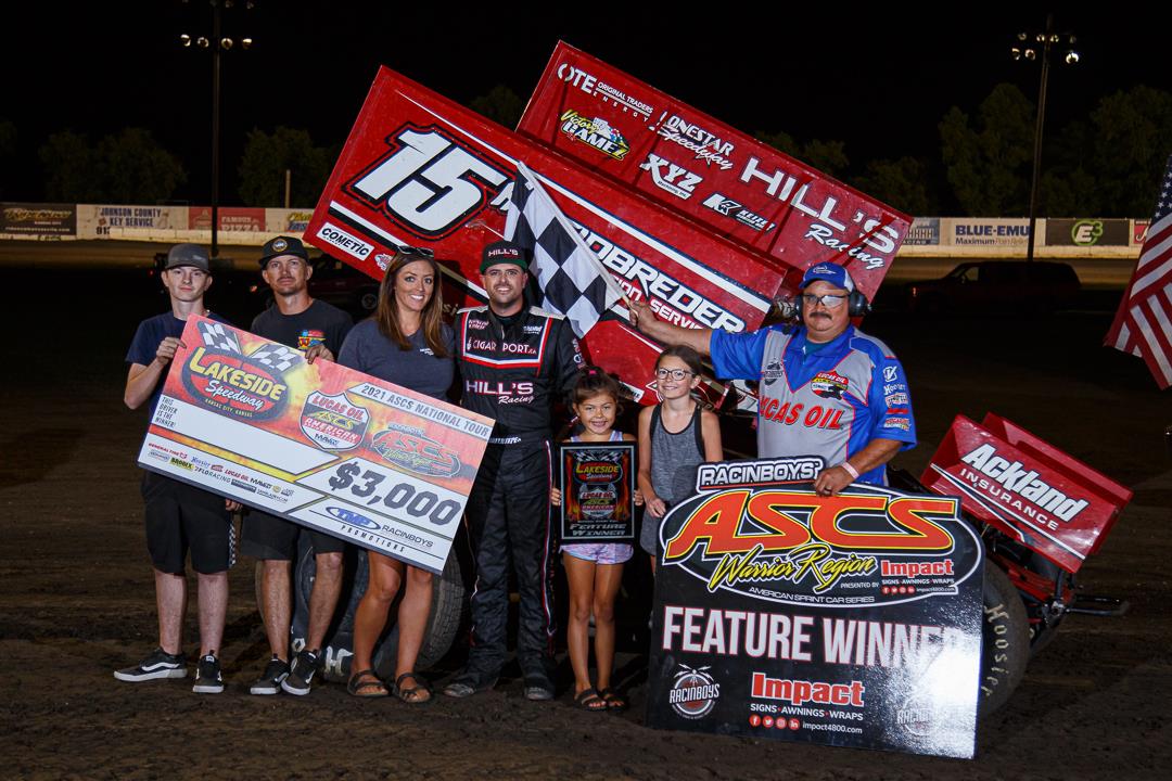 Bryan Hulbert – KANSAS CITY, Kan. (August 3, 2021) Rolling into Lakeside Speedway to take on the Lucas Oil American Sprint Car Series presented by the MAVTV Motorsports Network on Tuesday night, Sam Hafertepe, Jr. proved he hasn’t lost his touch as the Hills Racing No. 15h traded blows in traffic with Dylan Westbrook before parking in SawBlade.com Victory Lane at the Road To Knoxville presented by Terry Mattox Promotions and Racinboys.com.